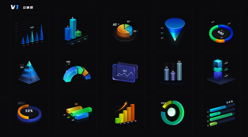 立体数据chart原型图 柱状图 可视化大屏figma格式