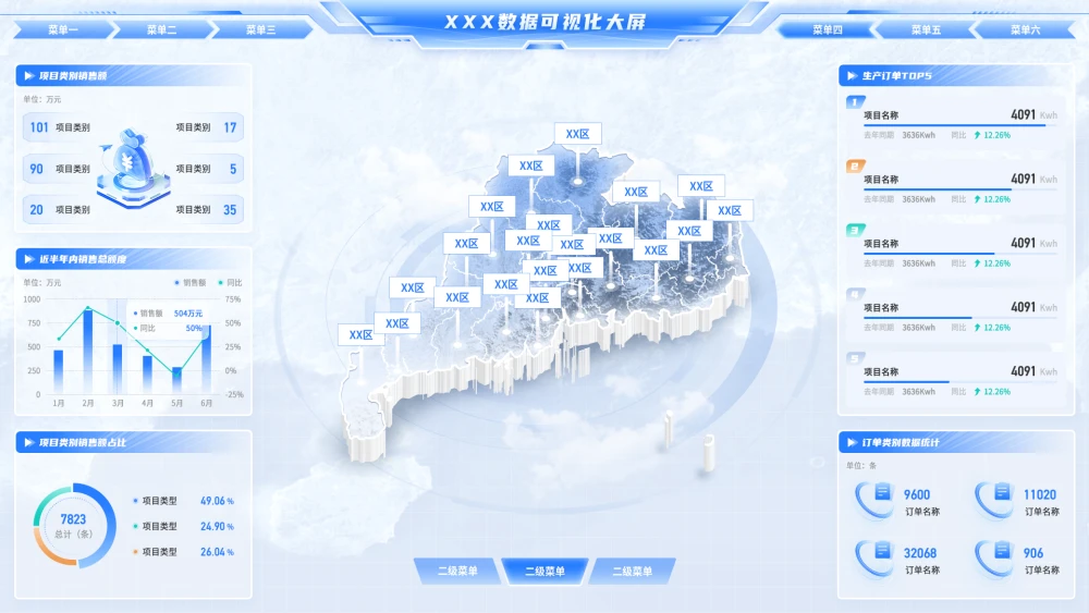 浅色蓝色数据可视化大屏 广东地图PSD格式