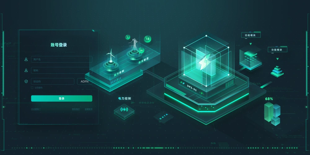 绿色风格可视化大屏立体3D电厂大数据智慧电力3登录页 后台入口figma格式