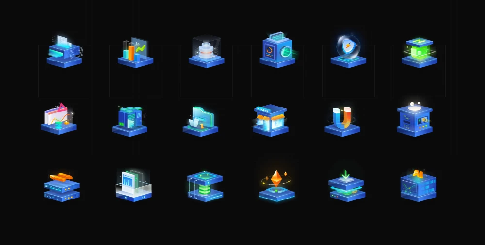 3D图标icon可视化大屏蓝色科技风标签 figma格式