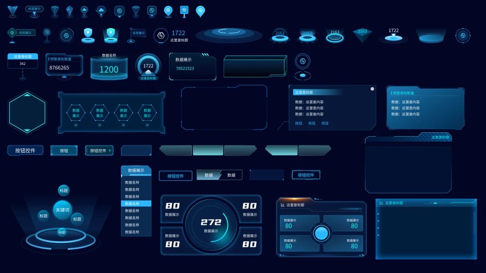 sketch+figma格式可视化数据-按钮点位元素模板 组件库
