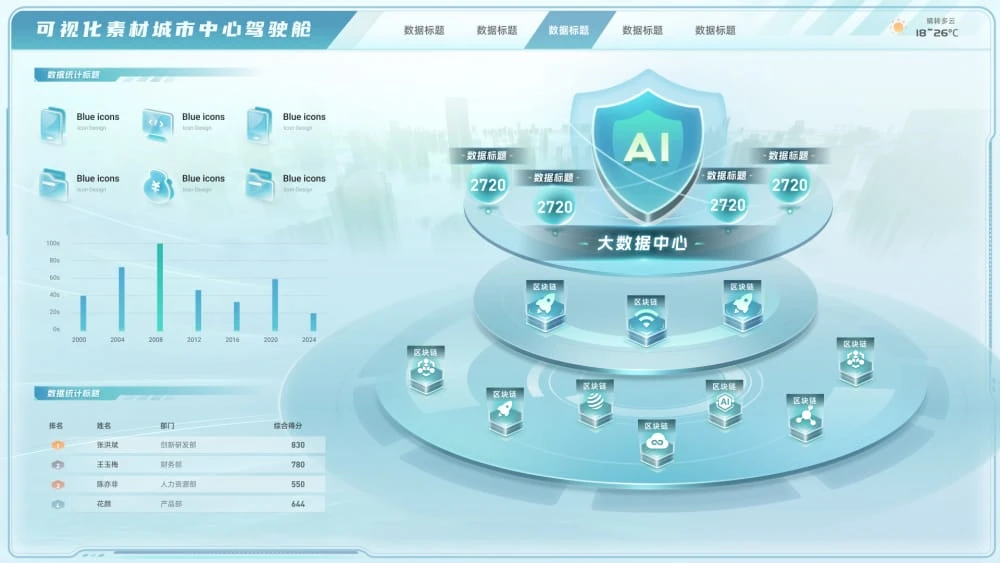 大数据城市中心驾驶舱 浅色 绿色 拓扑图 立体分层 系统入口 可视化大屏 figma格式