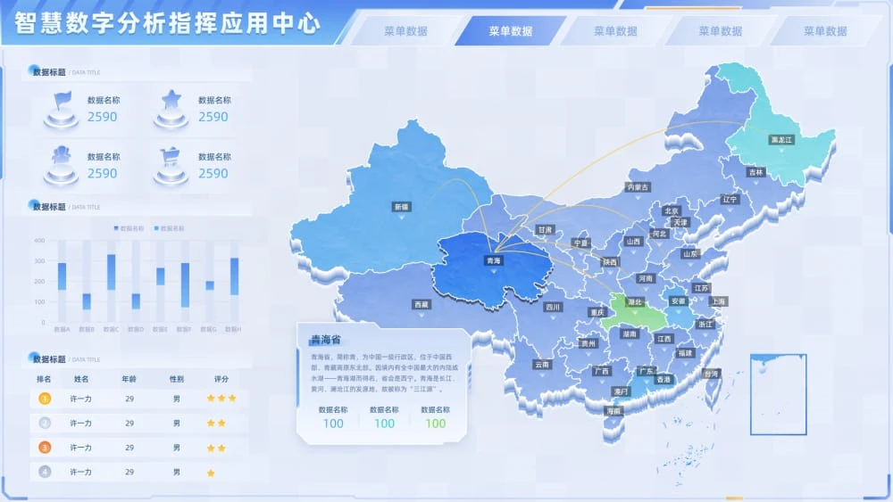 浅色 蓝色 大数据可视化 数智 中国地图 智慧数字分析指挥应用中心- figma格式